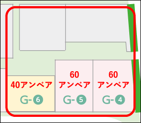 1ブロックに60アンペアは最⼤2区画まで、その他の区画は40アンペアになります。